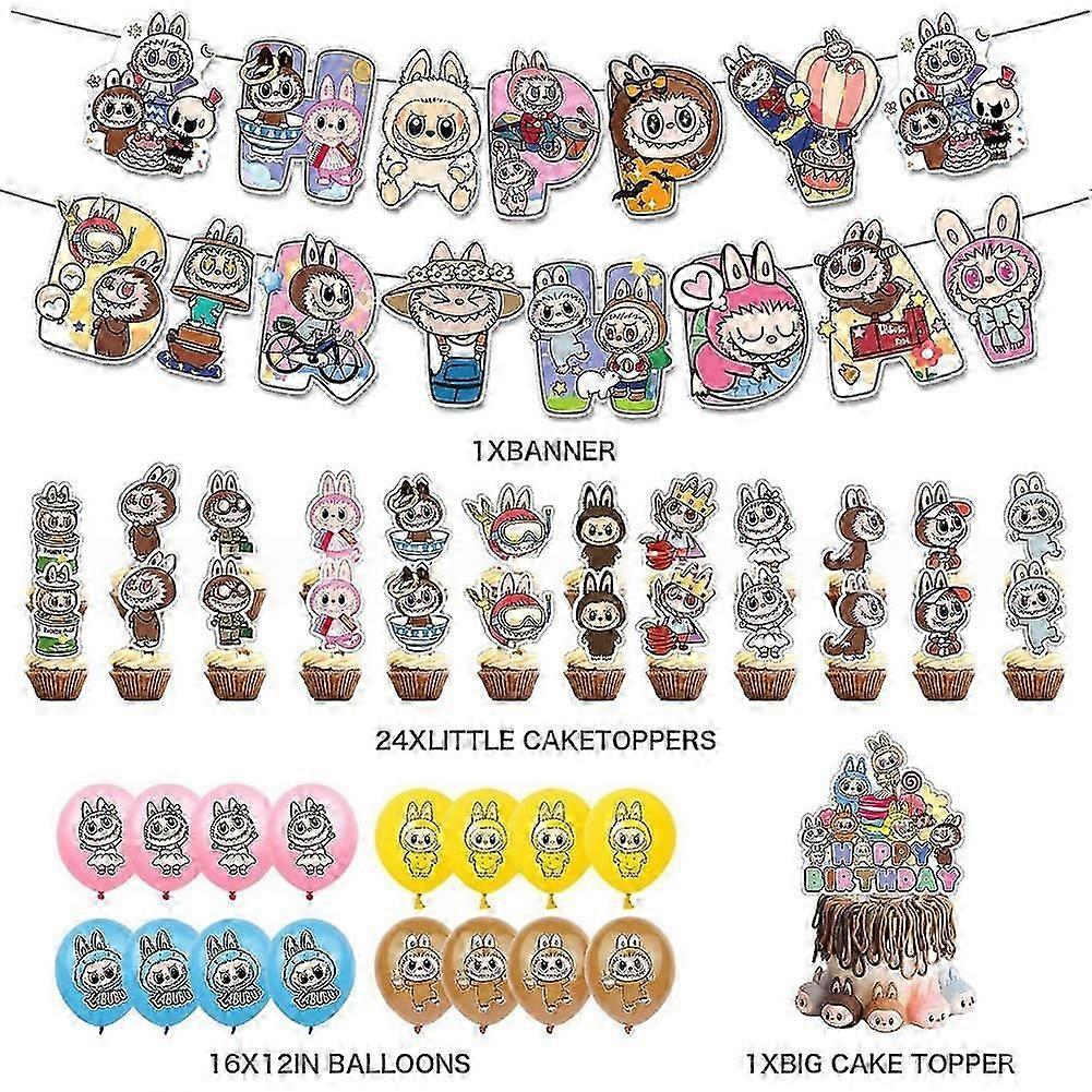 For Labubu Theme Birthday Party Props Cartoon Adorable Design for Fans Boys Girls