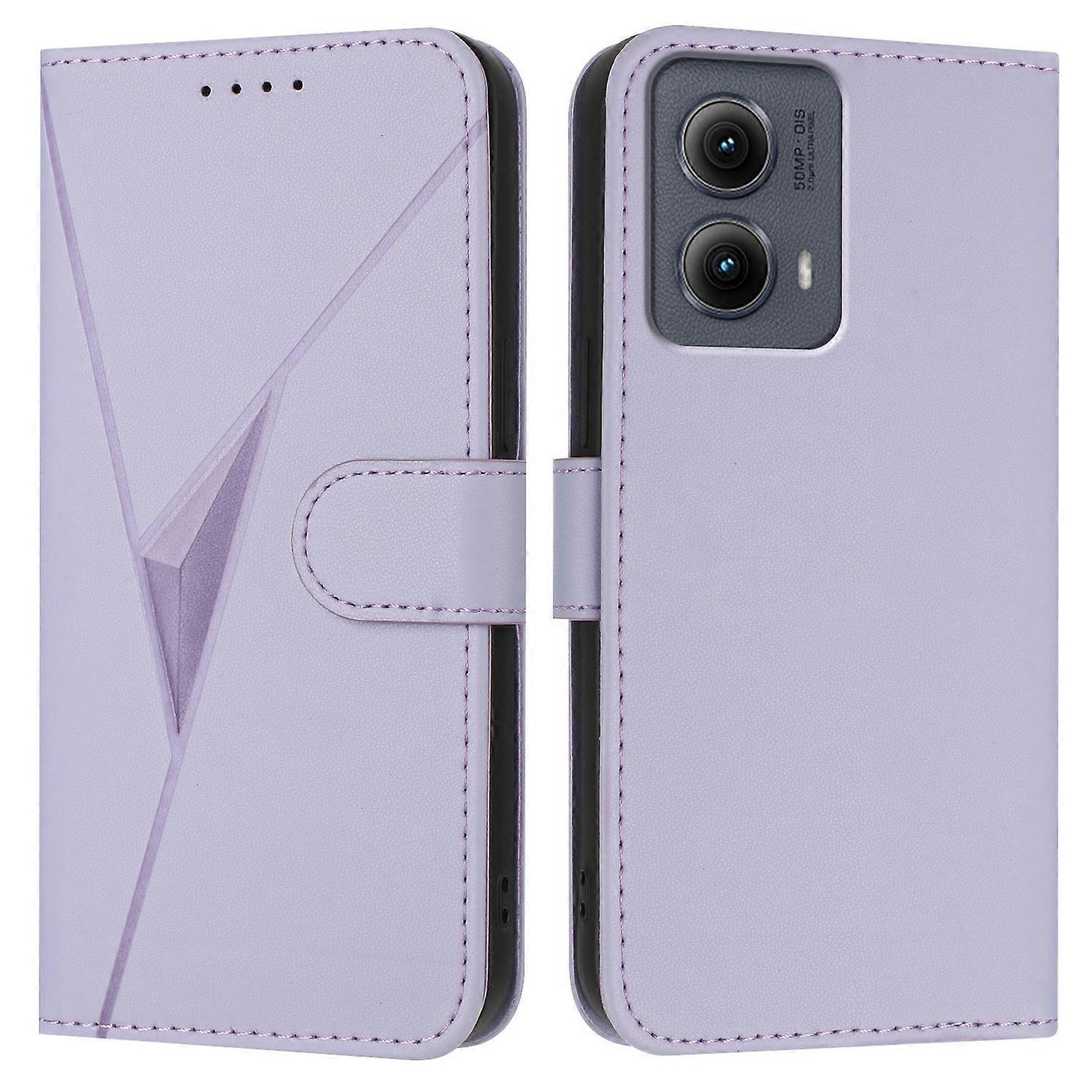 For Motorola Edge (2024) 5G Case Triangle Imprint Leather Phone Cover with Lanyard