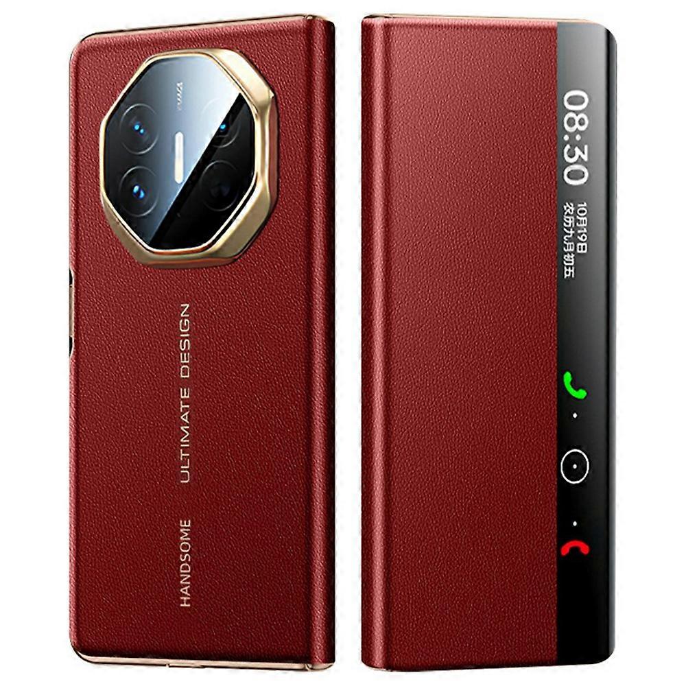 For Huawei Mate X5 Case View Window Genuine Cow Leather Smart Phone Cover