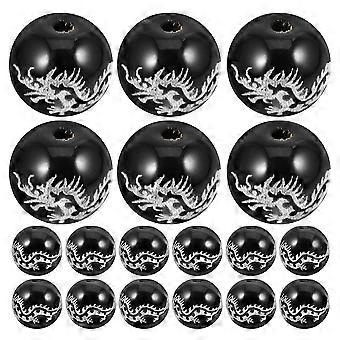 Dragon Pattern Agate Beads for DIY Crafting with Silver Foil 48Pcs