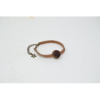 Holz Armkette Mit Lederband 1,5 Cm Zwetschke Edelstahl Unikat