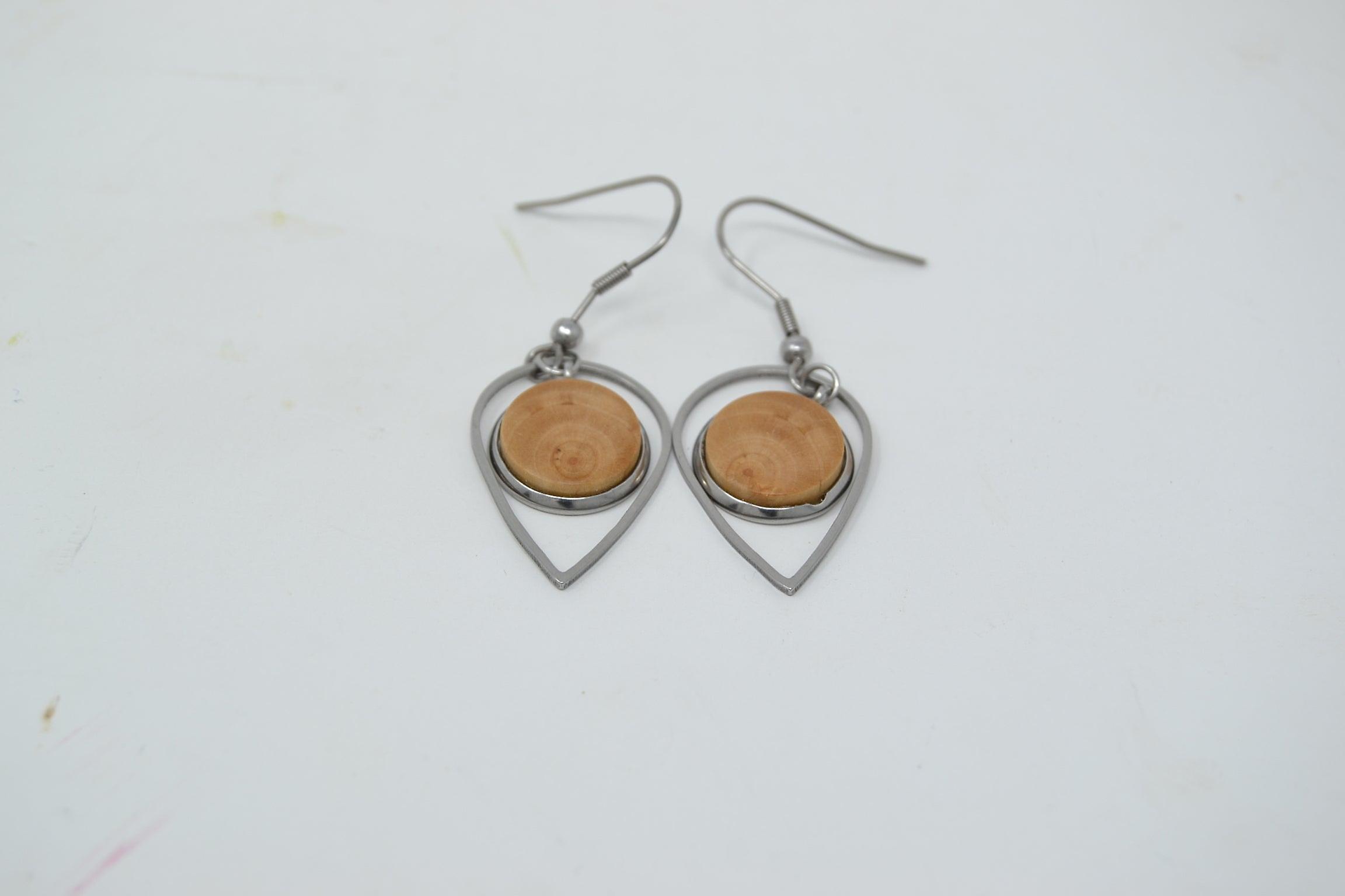 Holzohrringe 3x1,5 Cm Aus Apfelholz Handarbeit