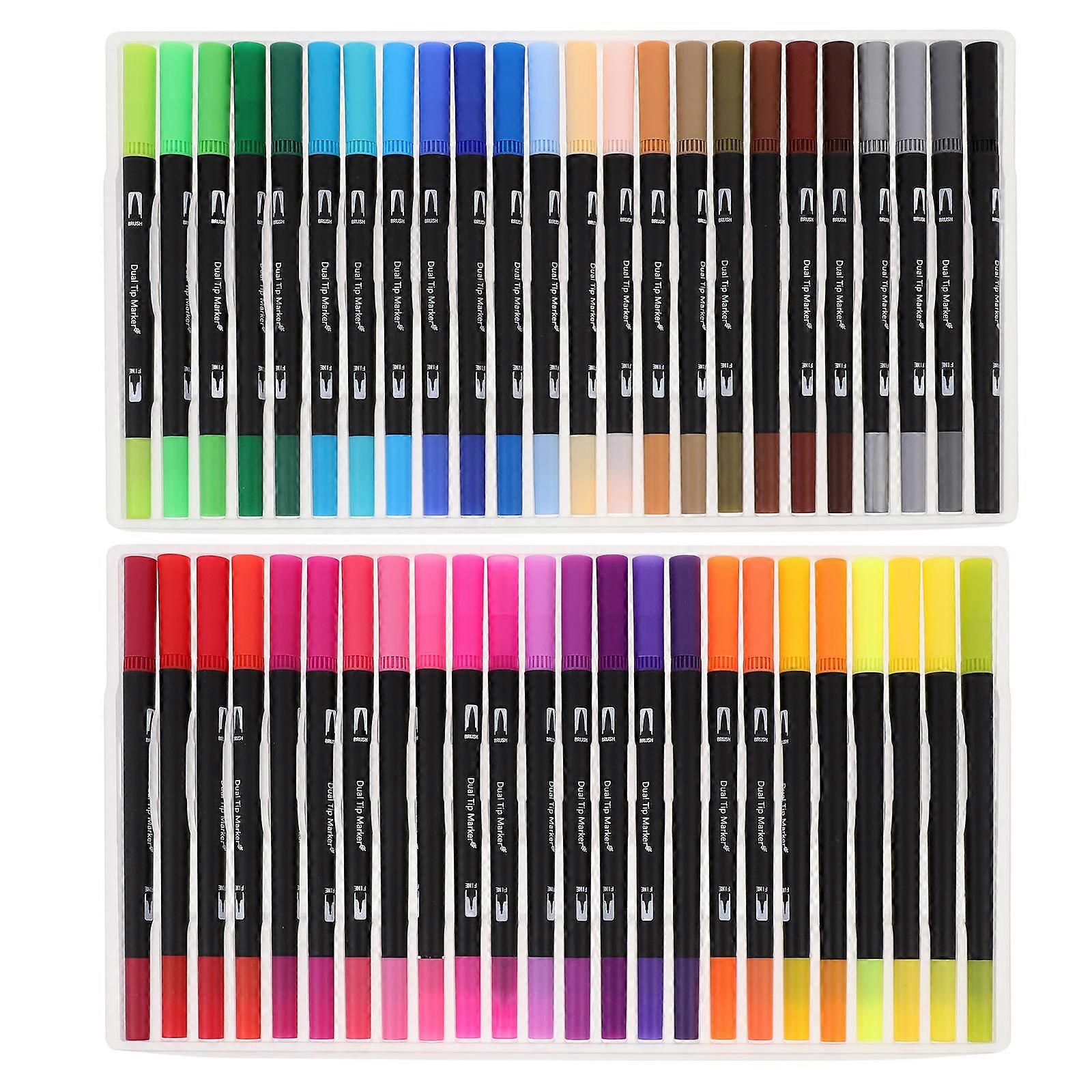 Dual Tip Markers Set School Use Writing Sketching Illustration 48Pcs