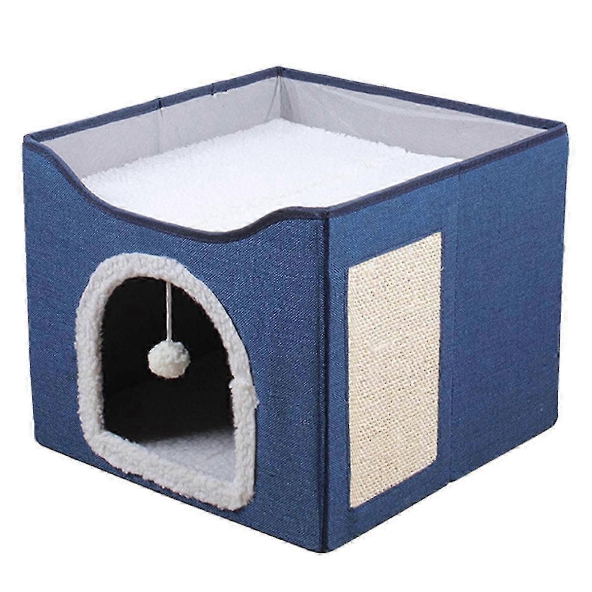 Large Cat Bed With Ball Hanging And Scratch Pad Double Layered Foldable Cat Beds For Indoor Cats Sleeping All Seasons,c