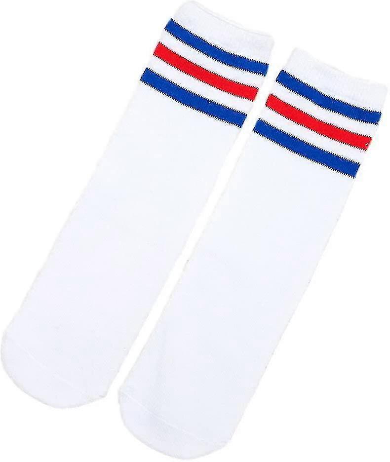 Children's Sports Over-the-knee Football Socks (white, Blue And Red Stripes) 1 Pair