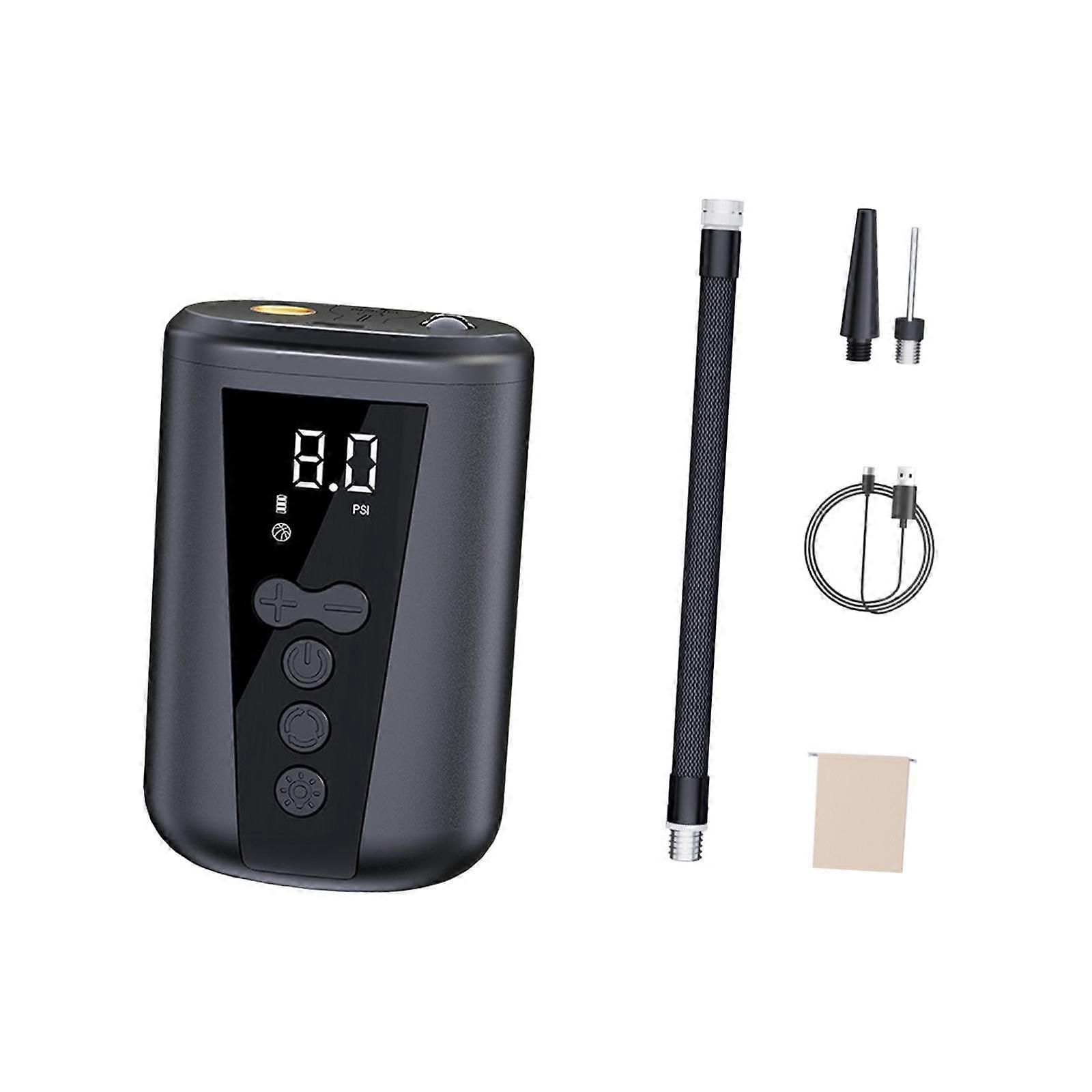 Description: Premium Material: This is a wireless inflation pump for basketballs and footballs, made from premium ABS plastic, sturdy, lightweight, easy carrying aroundHigh Performance: The portable sports ball pump has an inflation flow rate of 4 L/ min with a motor speed of 8000 RMP. It can inflate at pressures ranging from 2-15 psi, taking only about 1min and 40s to half inflate a basketballTemperature Range: This electric inflatable ball pump can operate in temperatures ranging from 0 degrees to 45 and can be stored in temperatures between -10 degrees to 60degrees With Light: The universal basketball air pump is also designed with light design, in size 5.5 cmx4 cmx9 cm/2.17 inchx1.57 inchx3.54 inch, easy to use on various types of sports equipment or inflatablesWide Applications: The multifunctional electric inflatable ball pump with intelligent inflation pressure function is widely suitable for football, volleyball, swimming rings, balloon, etc Specification: Material: ABS PlasticBattery Life: 45 Times (Half Pressed Basketball)Unit Display: Inflation Mode (Ball)Wireless Lithium Battery Charging: 5 v=1 a With Overvoltage Protection/Overcharge ProtectionPower Supply: 18650 Lithium Battery 2000 maCharging Time: Charging Time: 3-5 h Size Chart: 5.5 cmx4 cmx9 cm/2.17 inchx1.57 inchx3.54 inch Package Includes: 1 Set Electric Ball Pump Note: Please allow slightly errors 1-2cm differences due to manual measurement.