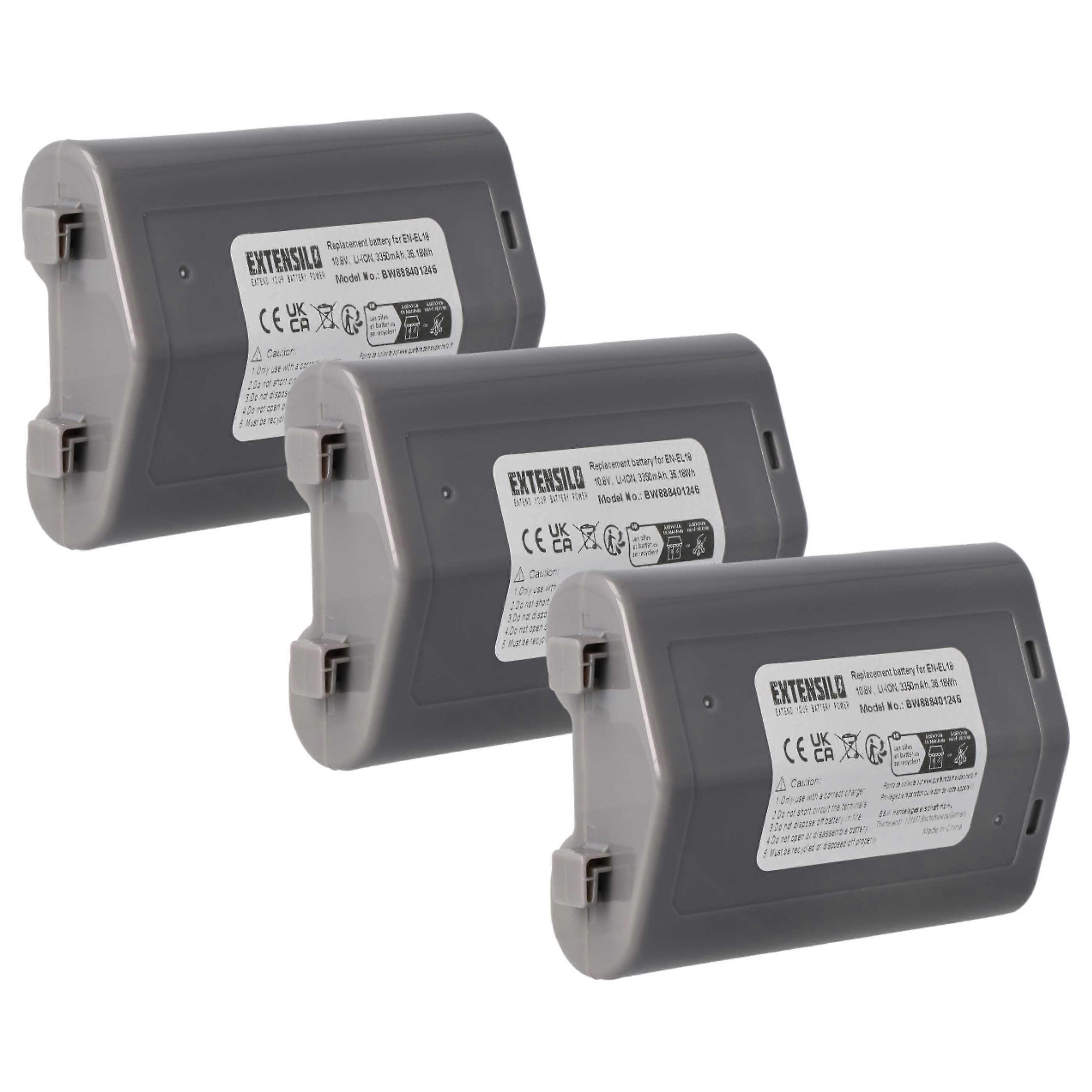 EXTENSILO 3x Akku Ersatz für Nikon EN-EL18 für Kamera (3350 mAh, 10,8 V, Li-Ion)