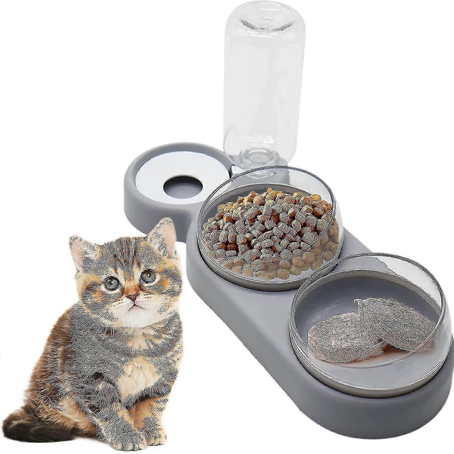 Gravity Water And Double Food Bowls,triple Cat Bowls Automatic Pet Feeder 15
