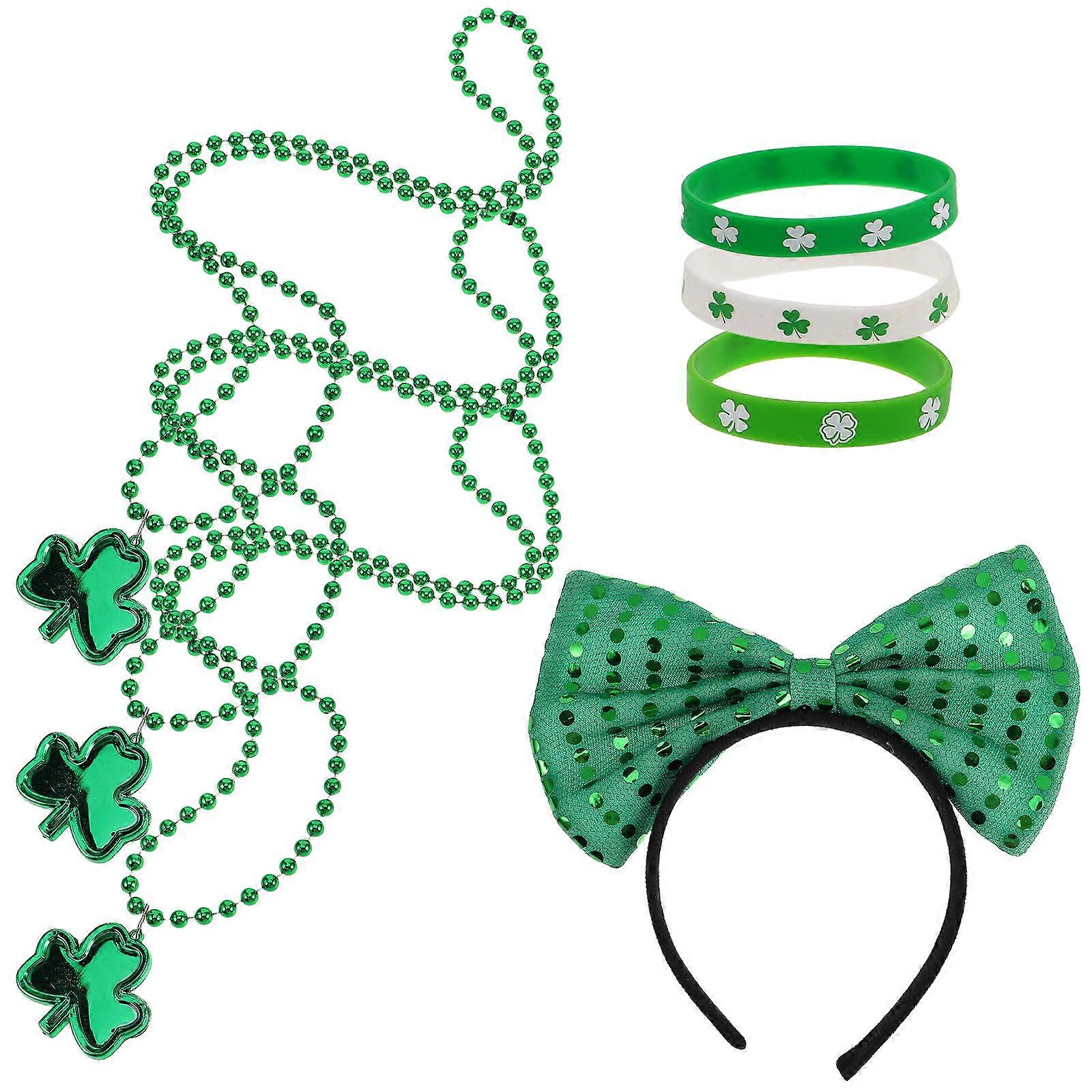 Green Shamrock Headband and Necklace Set for St. Patrick's Day Accessories 2Sets