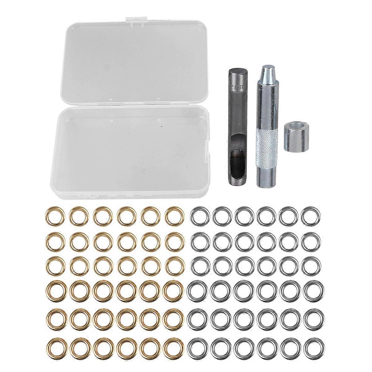 This metal grommets totally include 100 sets and Installation Tool. The easy- to- use grommet is suitable for shoes, clothing, DIY crafts projects, canvas, tarp, tents, awnings, and cloth- made things. Features Color: Assorted Color Material: Copper Size: About 18x12x3cm Package Including 1 x Set of Grommets with Tools Package list: 3 x Set of Grommets with Tools