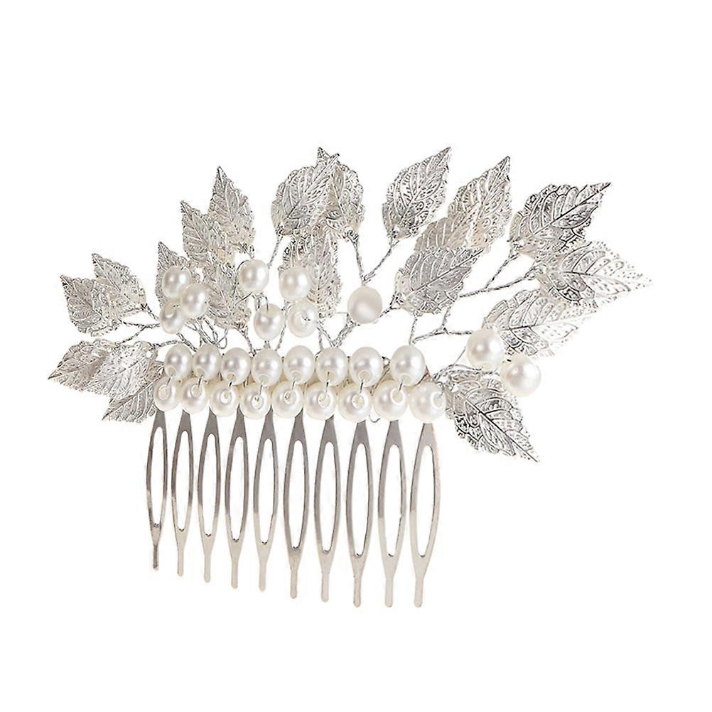 Bride Hair Comb Leaf Shape for Weddings and Garden Party Silver Color Zinc Alloy Adjustable Position 1Pack