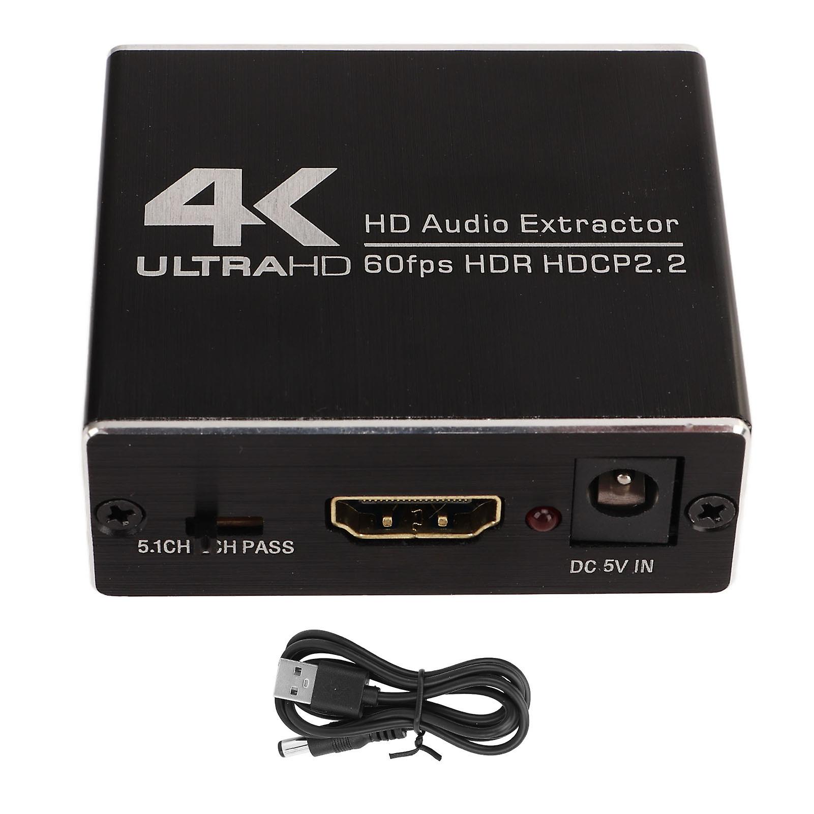 HDMI Audio Extractor 4K Ultra HD 60fps HDR HDCP2.2 Decoder 5.1 Audio Converter High Resolution Signal Splitter With USB Power Cabl