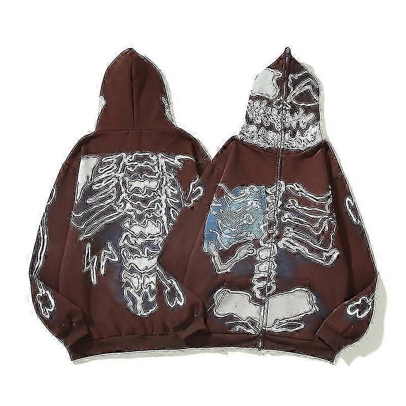Hip Hop Cactus Jack Fragment Skull Print Zipper Hooded Hoodies Men's And Women's Retro Oversized Harajuku Casual Sweatshirts
