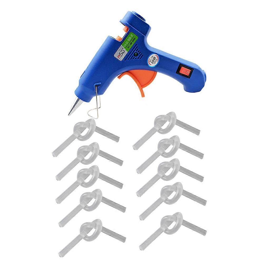 Note:This item comes with plug, please confirm the of your area before purchasing. Description The item is a pack of hot glue kit, which is perfect for repair and DIY. Ergonomic design trigger, safety and comfortable power with LED light mode. Besides, fuse safely for effective protection, insulated nozzle and detachable auxiliary stand. Features - Color: Blue. - Material: ABS+ electronic components - Size: About 11 x 5cm - Working power: 20W. -Applicable : - 20 watt, 100- volts; beautiful detail design; perfect for repair and DIY - Ergonomic design trigger & safety and comfortable power with LED light mode - Fuse safely for effective protection, insulated nozzle and detachable auxiliary stand - Glue sticks, strong adhesive and easy cleaning properties - Heats up in 3-5 minutes and maintain constant temperature automatically, ensure effective work Package list: 2 x glue sprayer 20 glue sticks