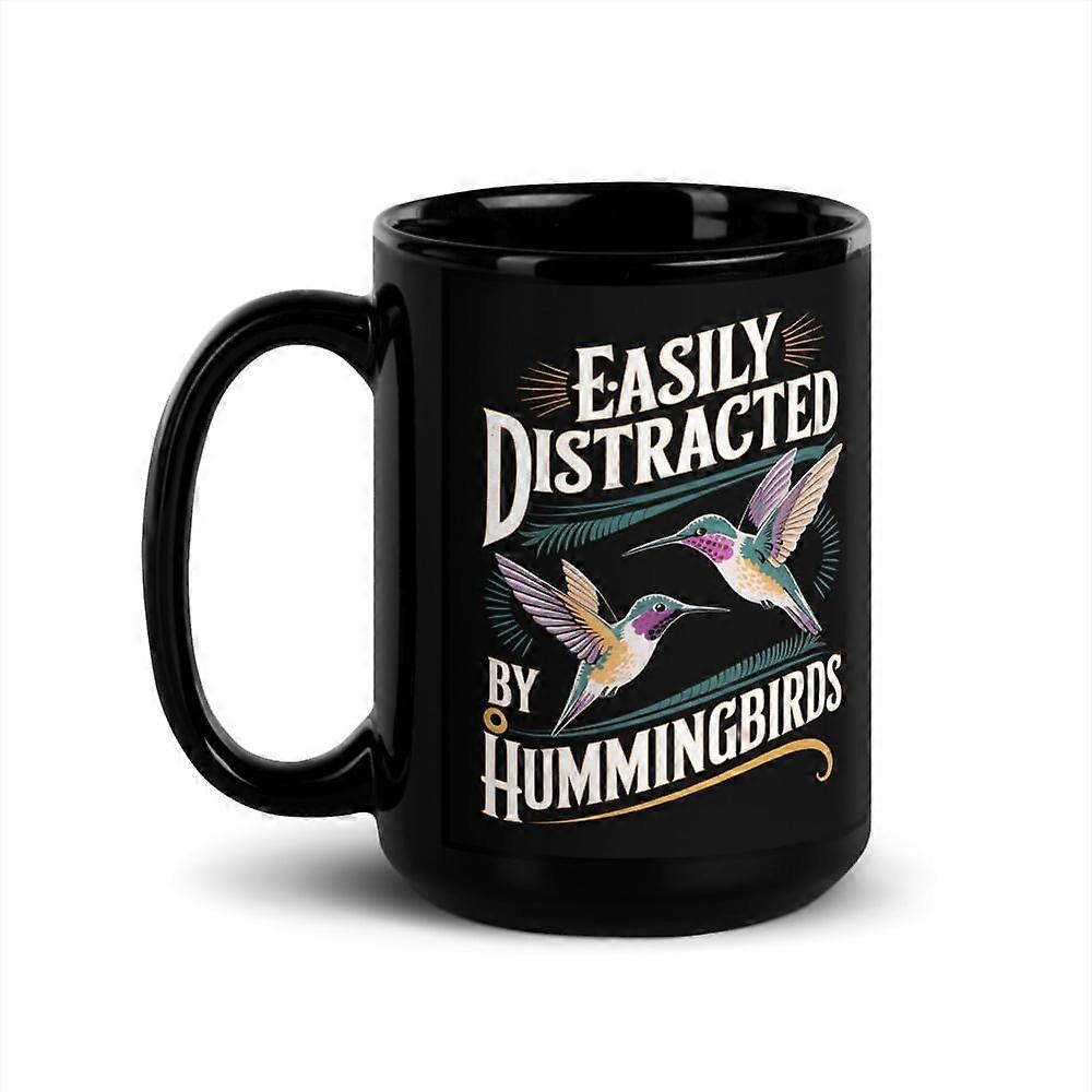 Hummingbird Bird Lover Black Glossy Mug, Easily Distracted By Hummingbirds (15 oz)