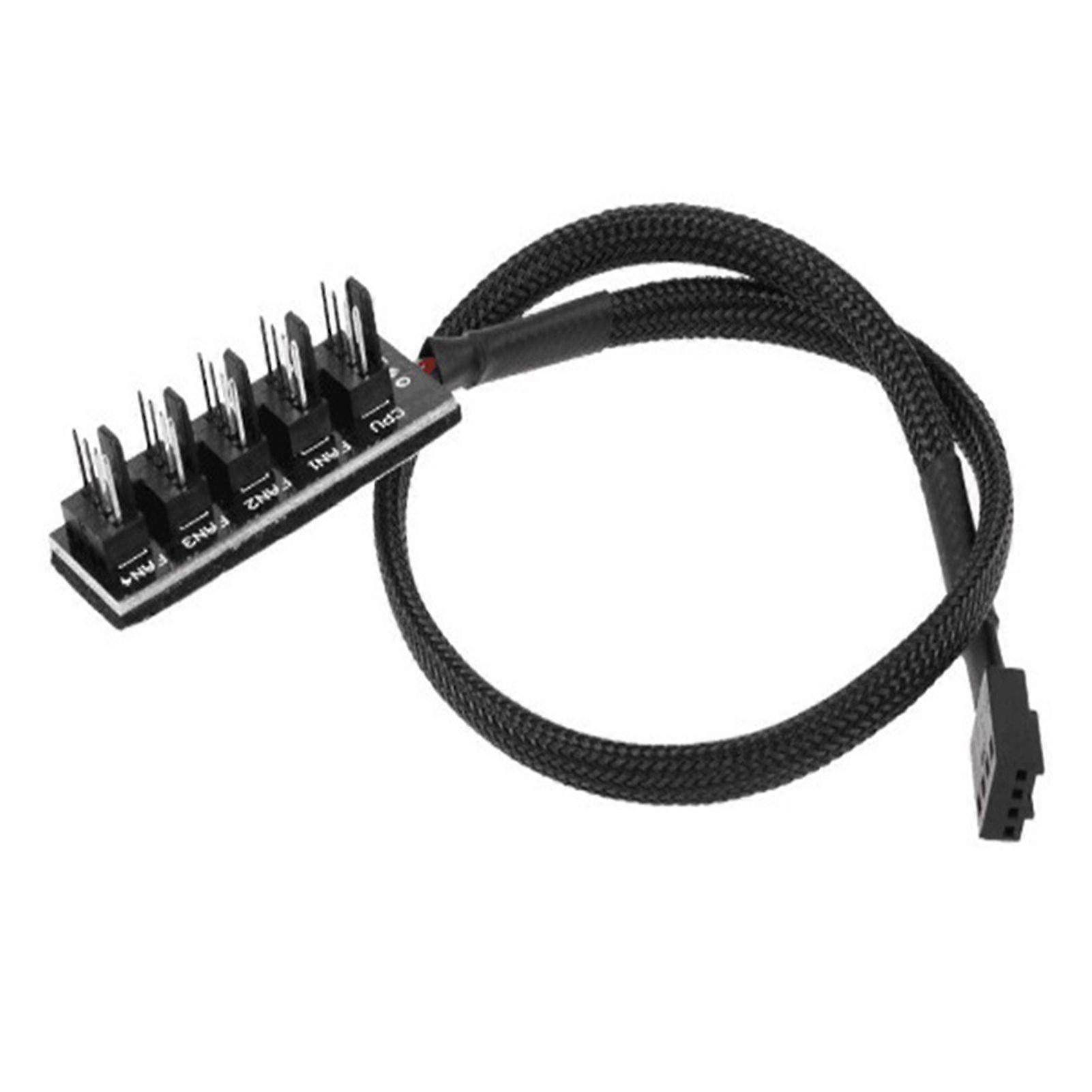 Jikaix Fan Hub Splitter Braided Cable Universal Fit Simple Installation Intelligent 4-Pin PWM CPU Cooling Fan Splitter Hub Adapter