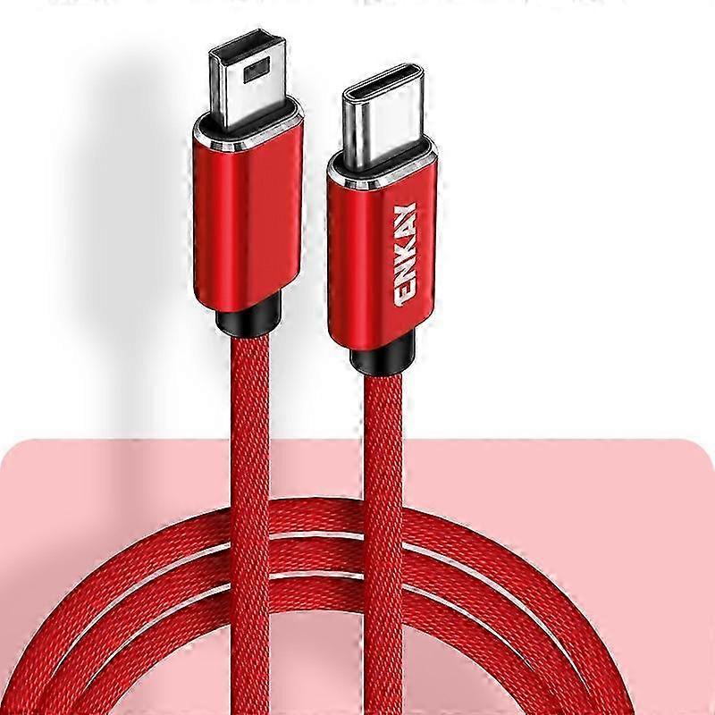 ENKAY USB-C to Mini USB 2.0 Charging Cable with Data Sync Function, 1-Meter Length, Red Color