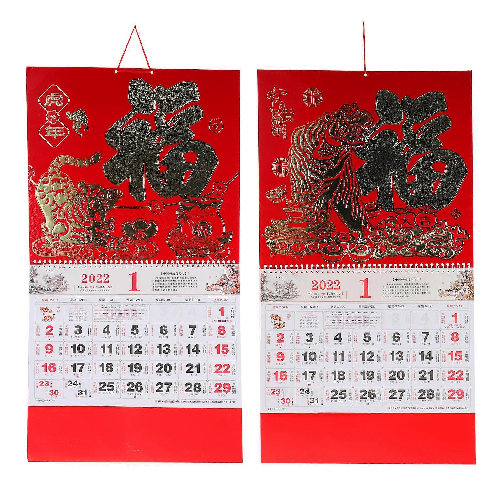 Wall Calendars Chinese Hanging Calendars Coil Binding Design Bright Clear Decoration 2Pcs