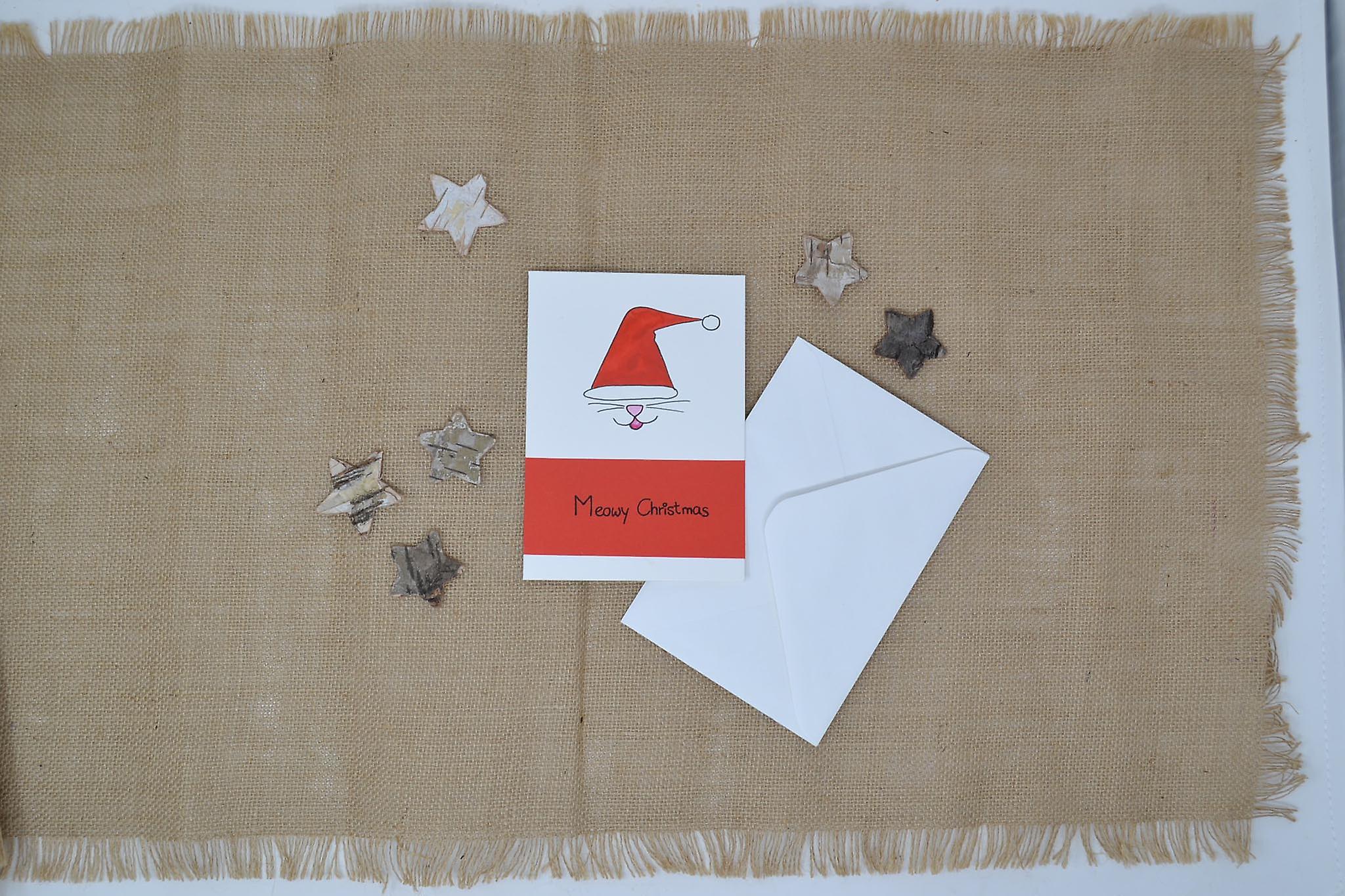 Geschenkkarte Grußkarte Weihnachtskarte "meowy Christmas" Handarbeit