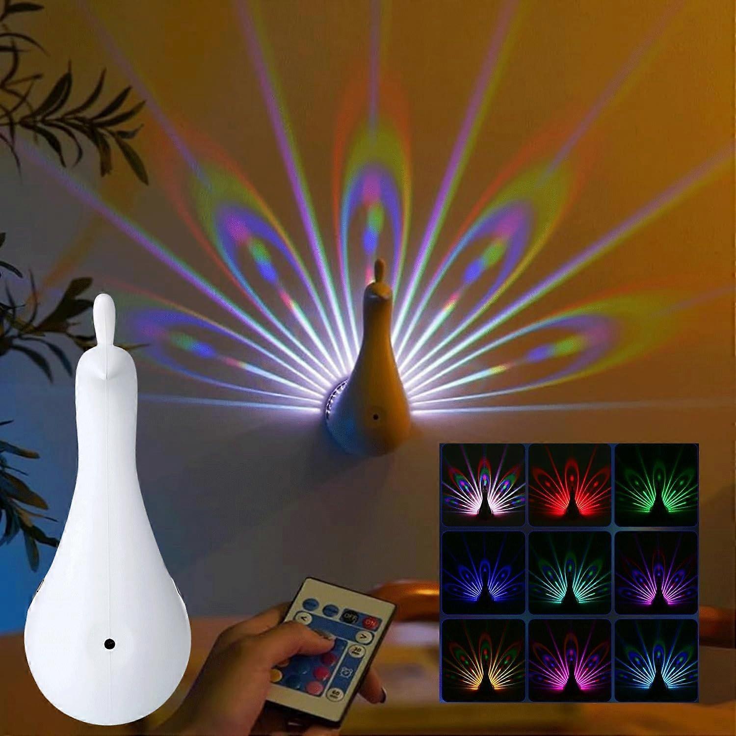 Peacock Wall Light, Projection Lamp with Remote, 7 Colors, Ambient Peacock Projection (White)