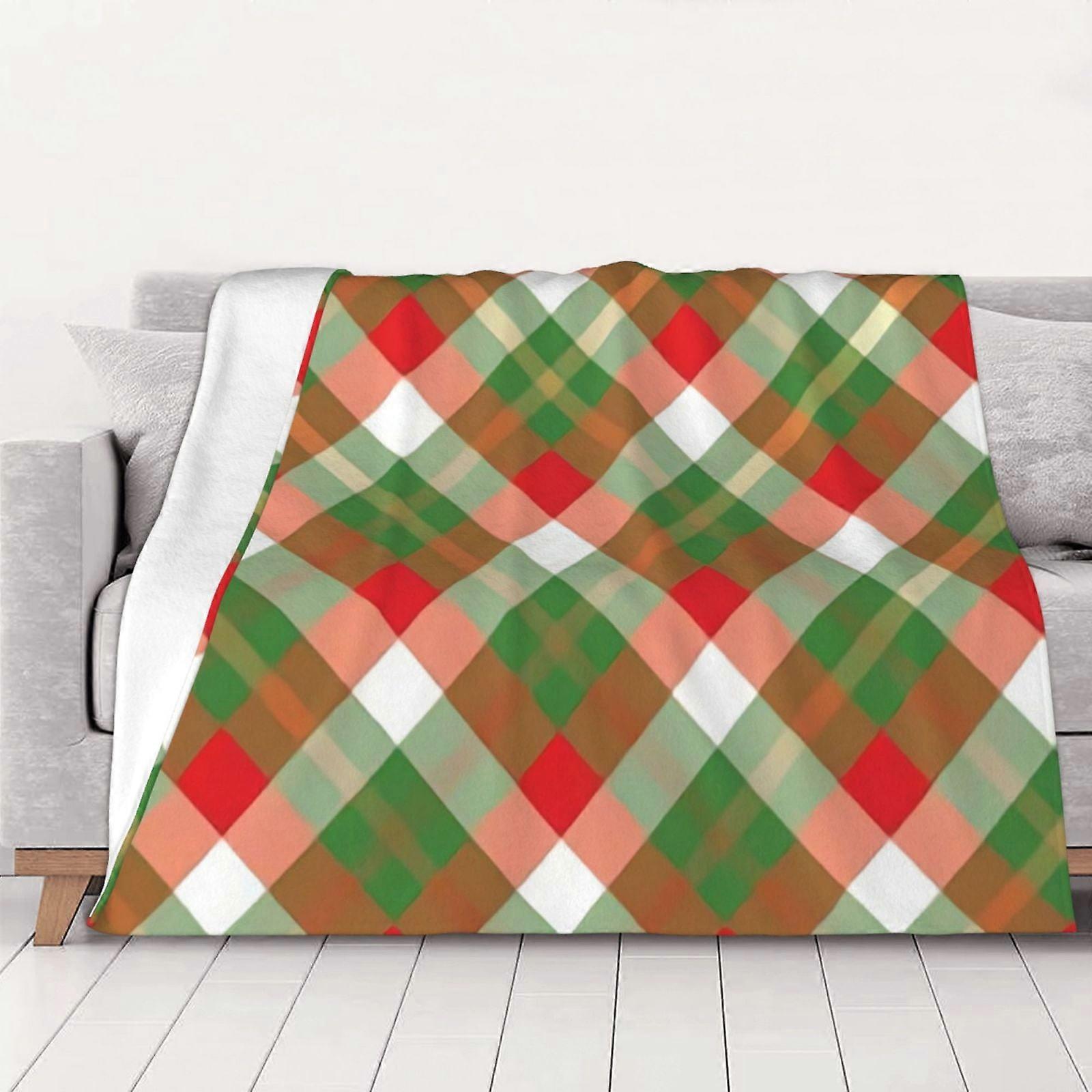 Christmas Plaid Fleece Blanket Super Soft Cozy Throw Blanket, For Man Woman Old People & Kids Bedding Features - Super Soft 50"X40"