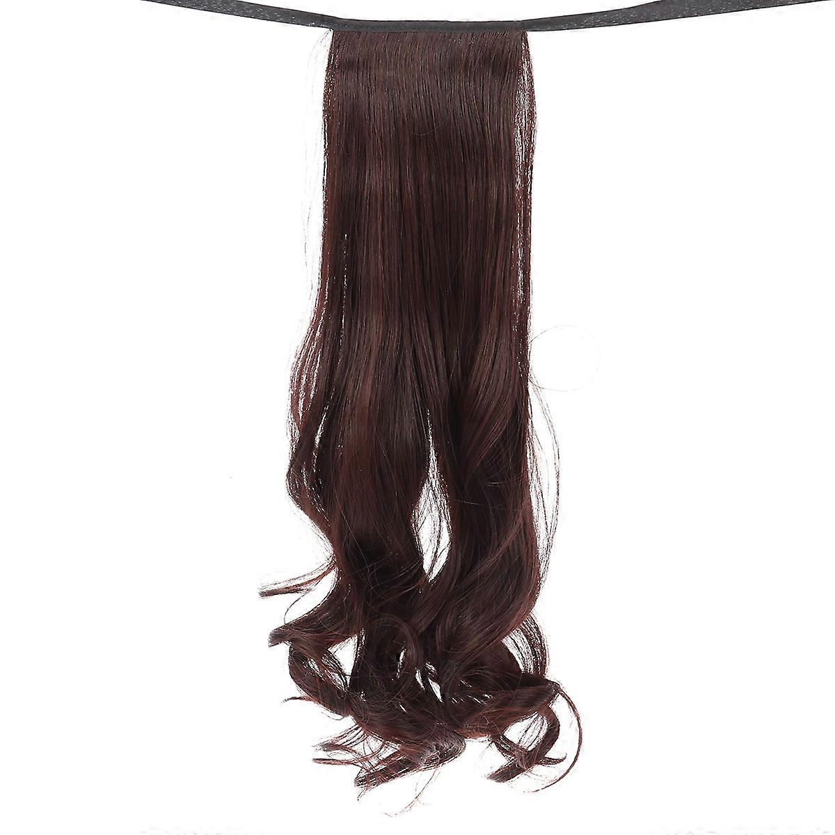 Curly Dark Brown Ponytail Hair Extensions Wavy Synthetic Ribbon Hairpiece for Women, High Temperature Comfortable Daily Wear for Parties & Costumes