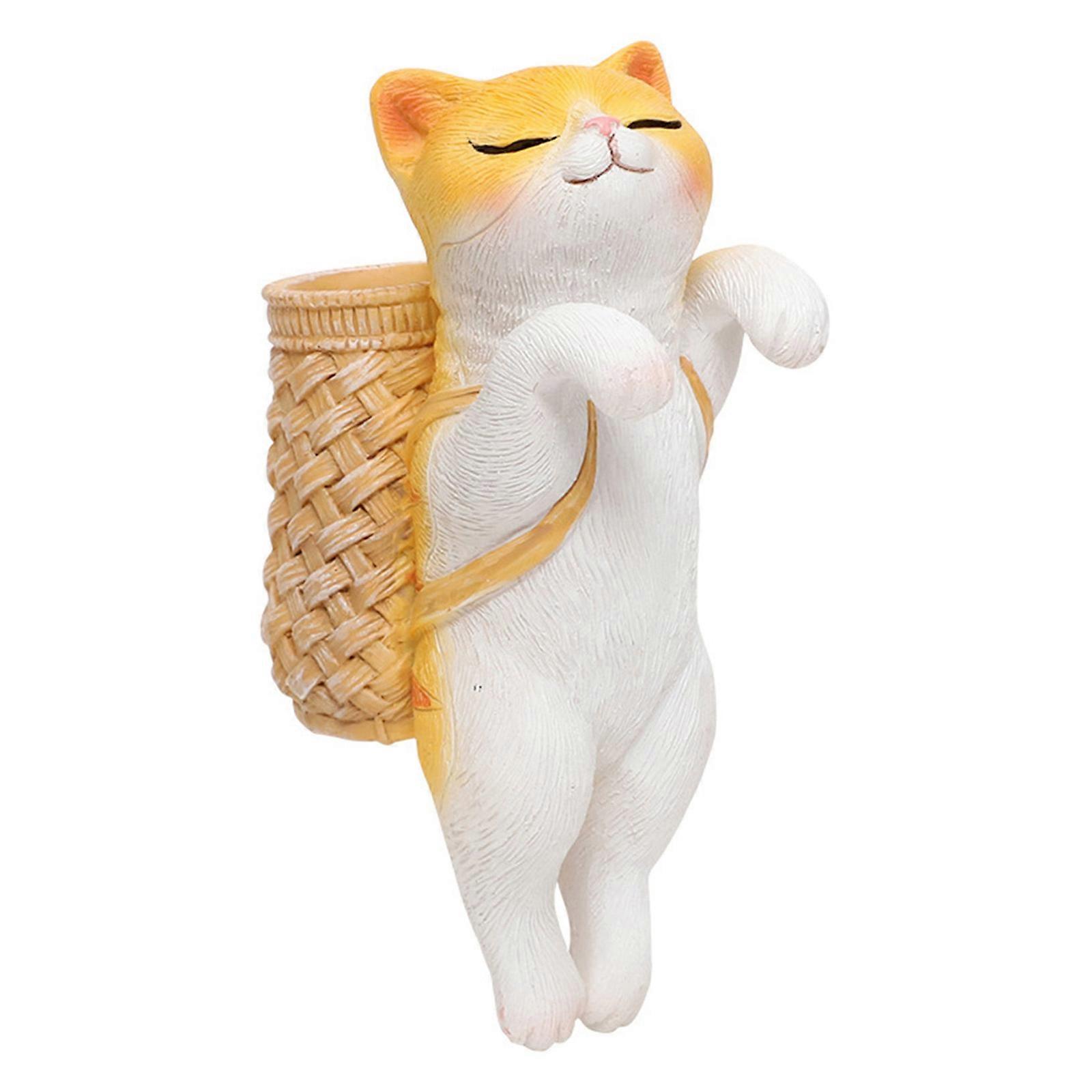 Cartoon Cats Shape Flower Pots Side Hanger Resins Figurine Planter Hook Ornament for Plant Lover and Cats Enthusiasts Orange Cat