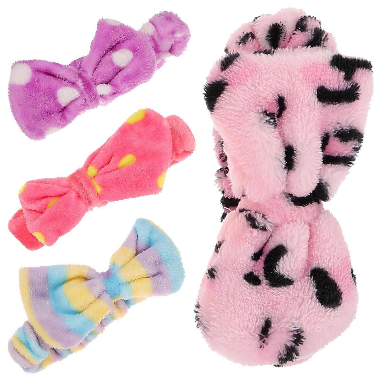 Leopard Adjustable Headbands Fabric Hair Fixing Band for Applying Mask Deep Pink with Yellow Dots 4Pcs