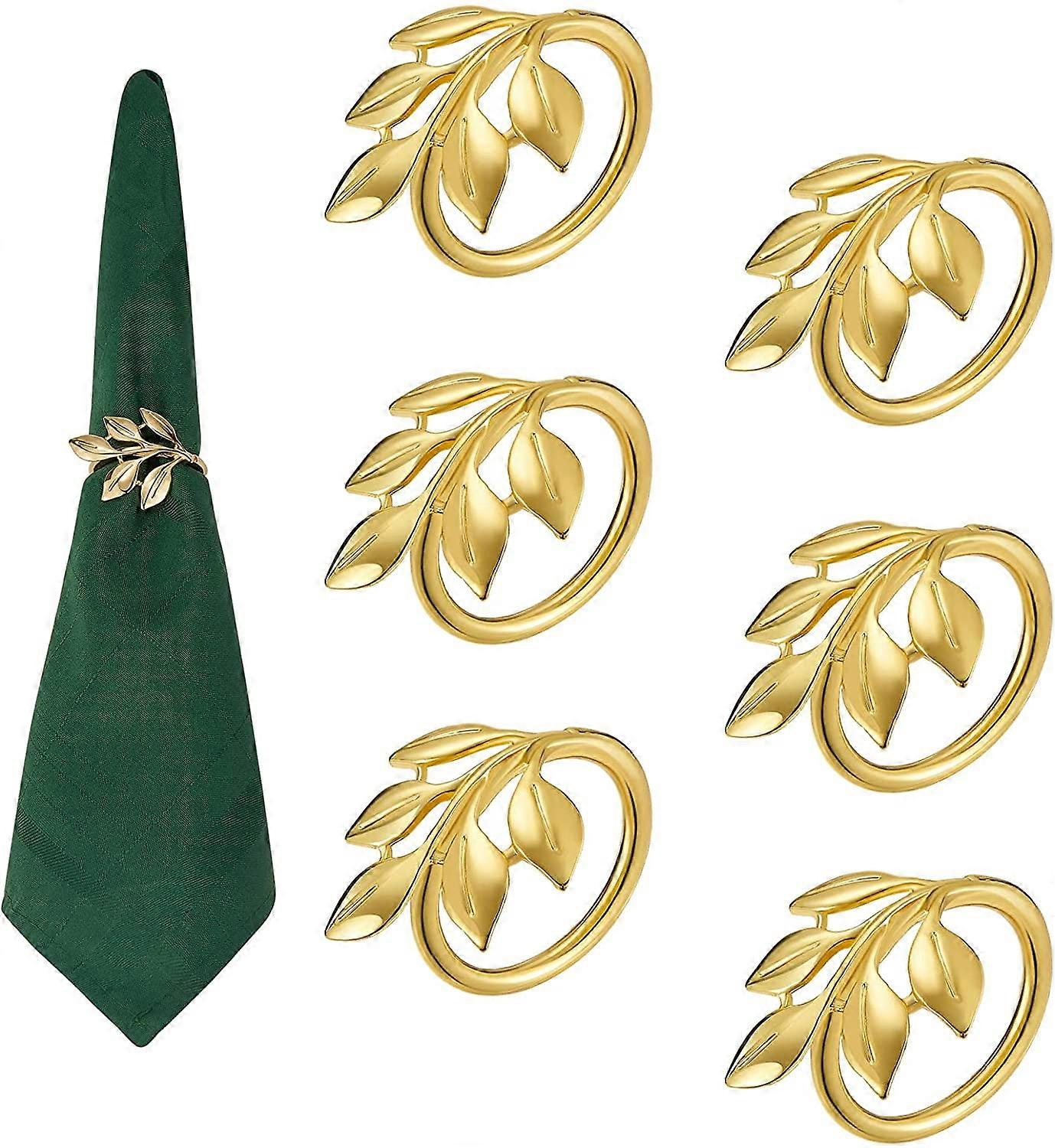 Limei Golden Maple Leaf Napkin Rings Set of 6, Vintage Leaf Napkin Ring Holders Halloween Napkin Rings for Fall, Easter, Thanksgiving