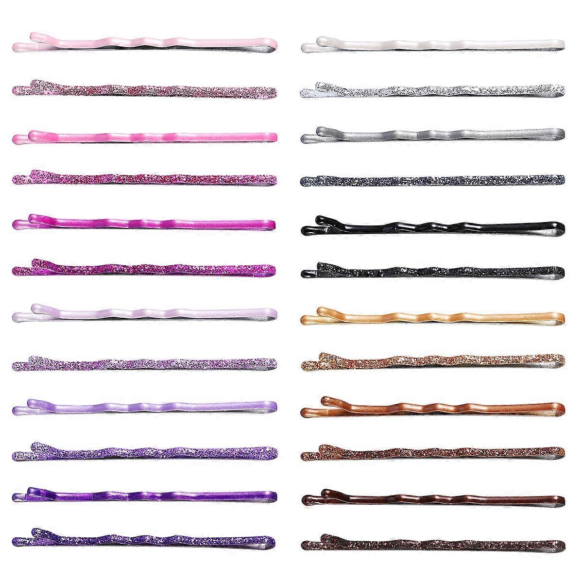 Lurrose 96pcs Glitter Powder Hair Clips Stoving Varnish Hair Metal Styling Barrettes (Golden, Pink, Purple and Black Each Sheet)