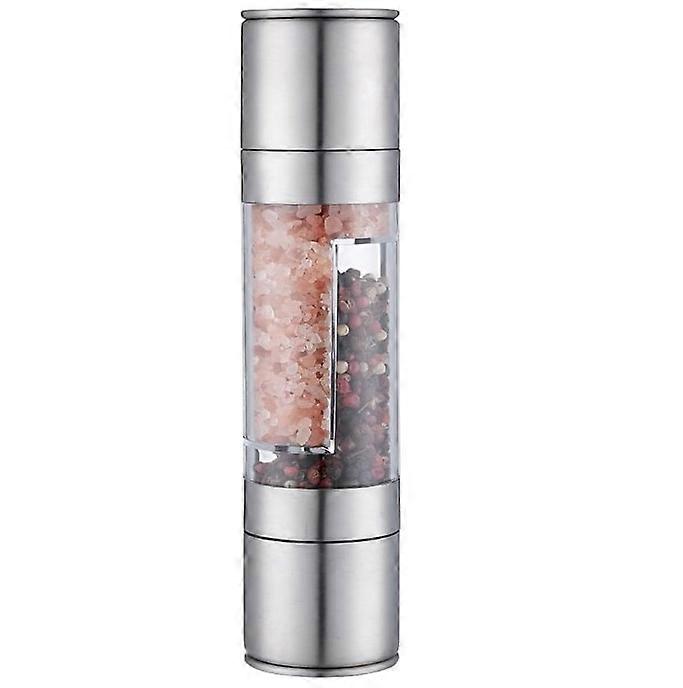 Salt and Pepper Grinder,2 in 1 Manual Two-Head Pepper Mill,Refillable and Adjustable Manual Pepper Mill,Grinder for Pepper, Salt, and Spices, Fits in
