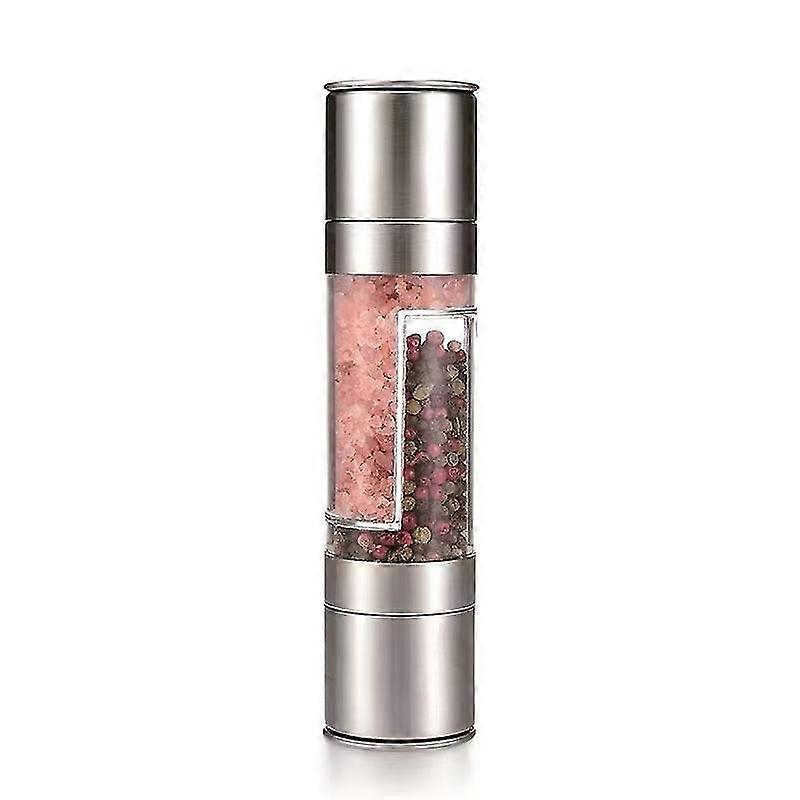 Sea Salt And Pepper Grinder, Stainless Steal 2 In 1 Dual Chambers, Seasonings Spices Mill With Adjus