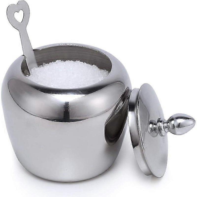 Small Stainless Steel Sugar Bowl Sugar Bowl With Lid And Heart Shaped Sugar Spoon