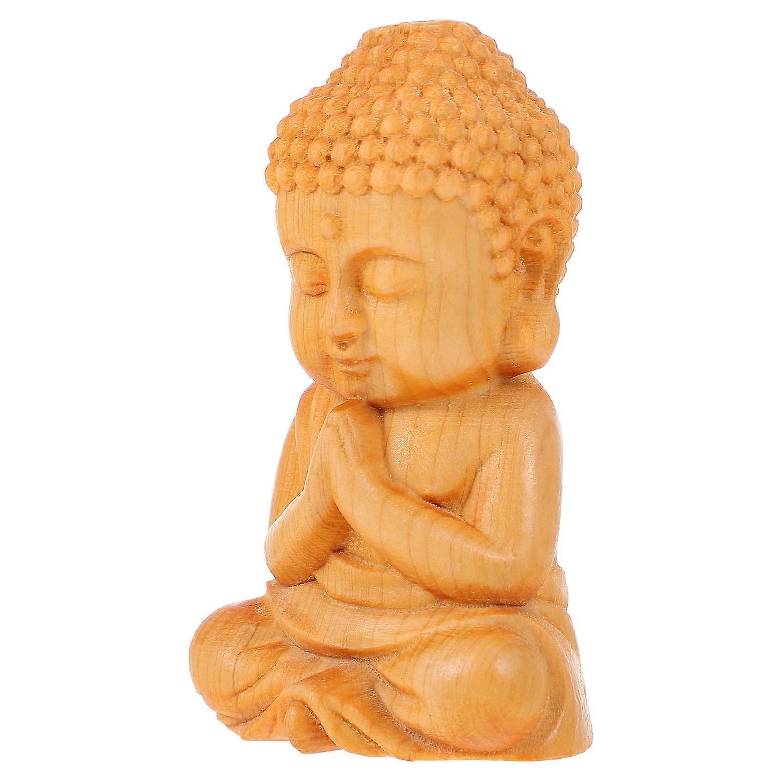 Meditating Seated Buddha Statue Wood Buddhist Sculpture Office 1Set