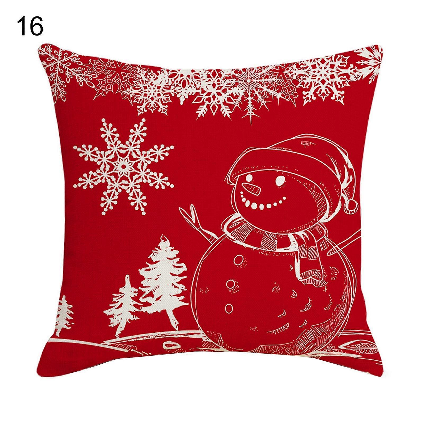 MengXi Eye-catching Pillow Cover Invisible Zipper Design Flax Exquisite Printed Christmas Pillowcase for Gifts