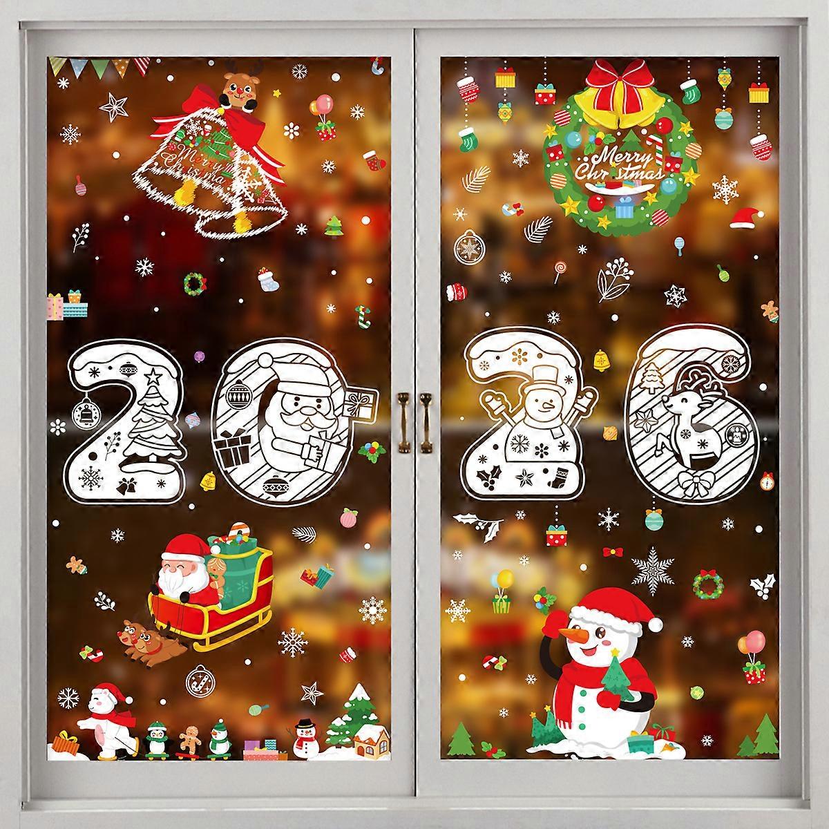 Merry Christmas Stickers Christmas Products White Snowflakes Static Stickers Santa Claus Elk Snowman Window Stickers [5 Combinations] B