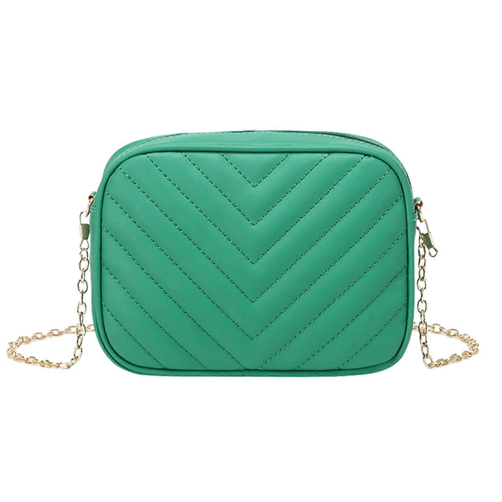 Men's Briefcase with Shoulder Strap, Fashion Messenger Bag Simple Striped Trendy Chain Green