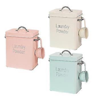 Metalowy kubełek z proszkiem do prania Kwadratowy pojemnik na proszek do prania Pojemnik z pokrywką i łyżką Pill Case