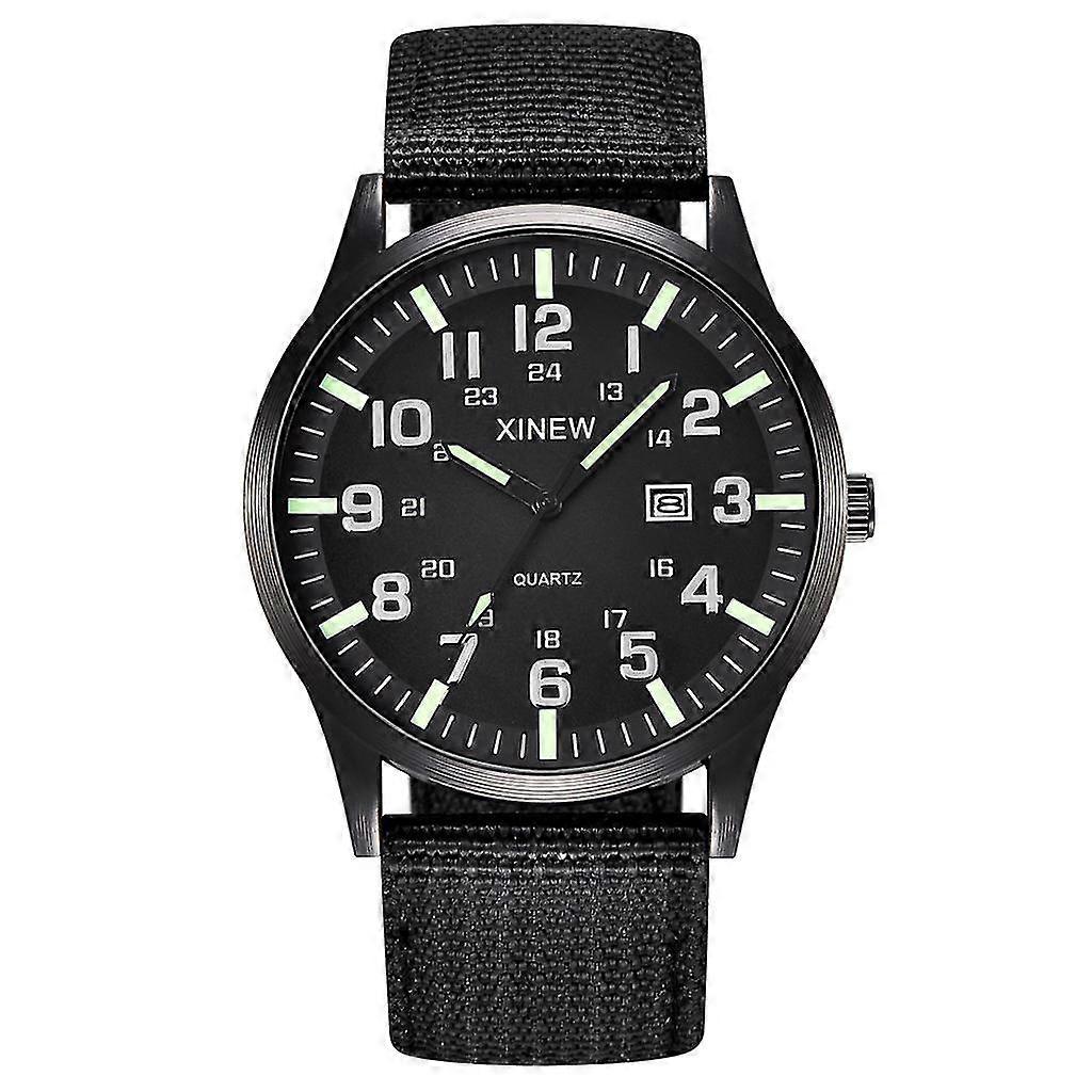 Men Boy Round Dial Nylon Strap Band Military Date Quartz Wrist Watch Gift