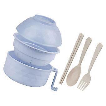 Microwave Ramen Bowl Set with Lid Made of in Skyblue for Home Use 3Piece Design