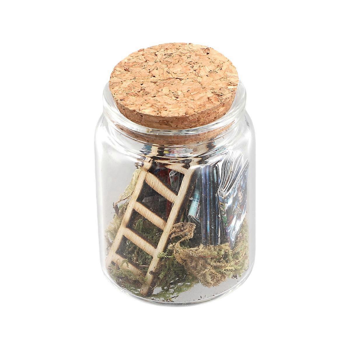 Mini Library Microlandscape Miniature Book Ladder Ornaments in Clear Container Decorative Model Statue Scene Miniature