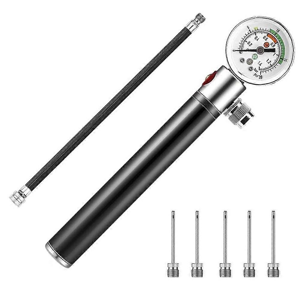Mini ball pump, ball air pump with pressure gauge and 5 needle valves for football, basketball, volleyball, rugby
