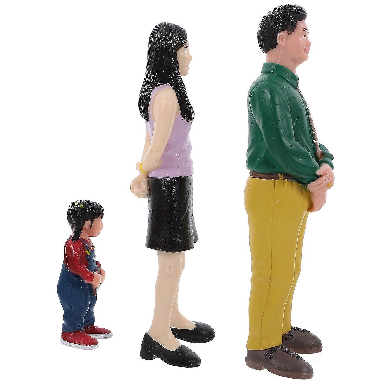 Miniature Family Figurines Set Realistic Dad, Mom, Girl for Dollhouse, Sand Table & Playset Decorations Engaging Display Scene Figures