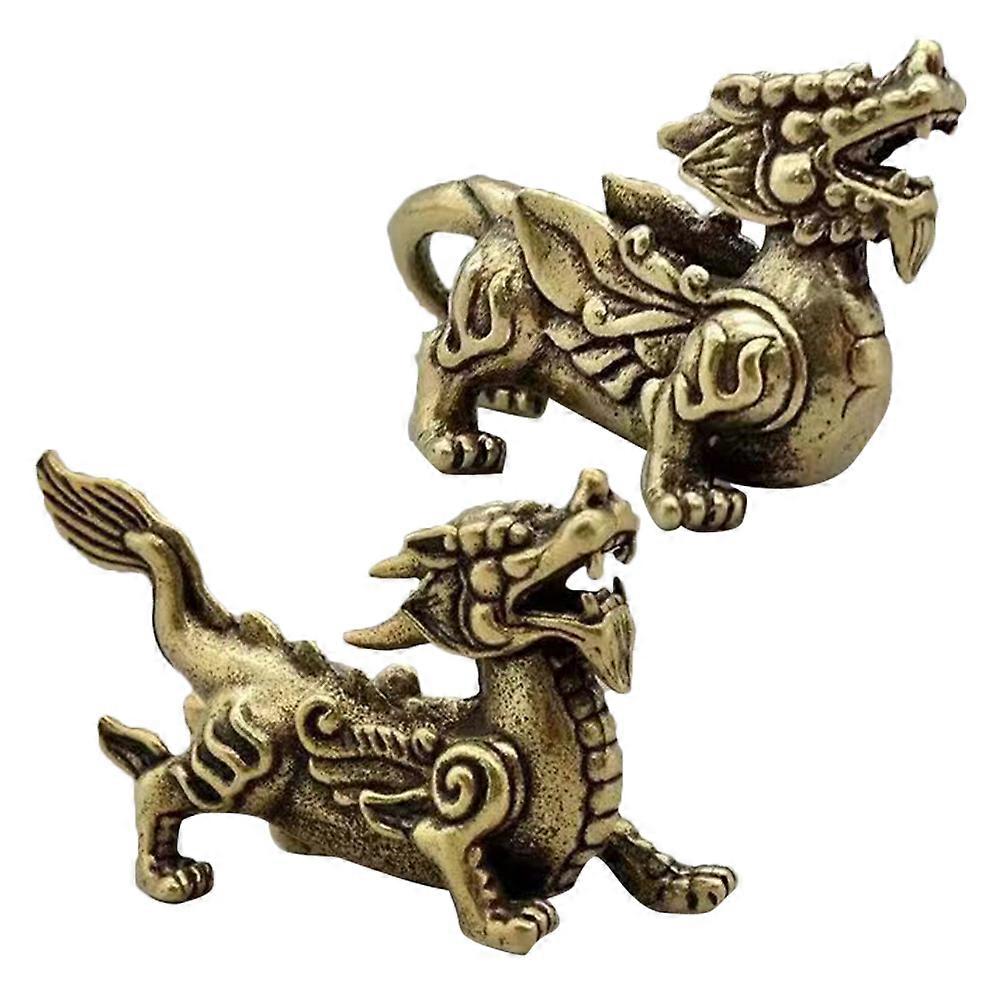 Miniature Chinese Mythological Creatures Home Decor Item Crafted From Brass Size 2×1.3×2.4in Enhancing Artistic Design In Office 3 Pairs