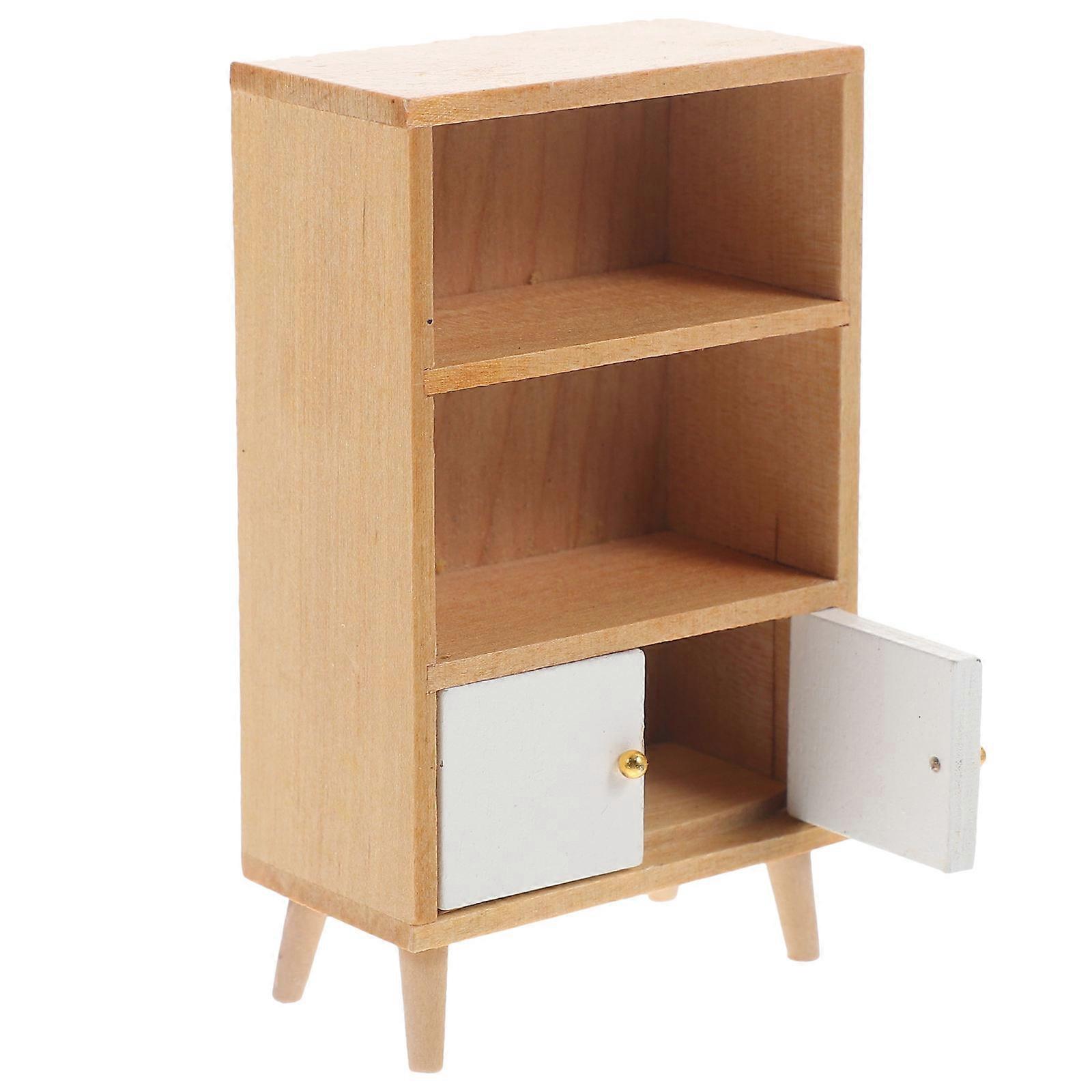Miniature Wooden Book Cabinet Doll House Furniture for 5Pcs Set