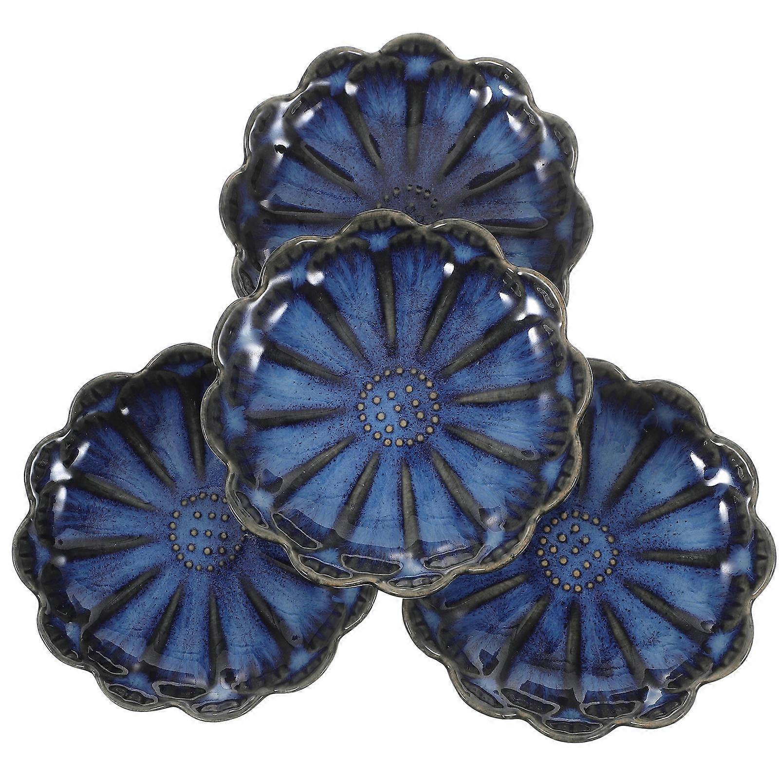 Soy Dipping Bowls Flower Shape Sauce Dishes Family Use Ceramic Blue for Dipping Sauce 4Pcs