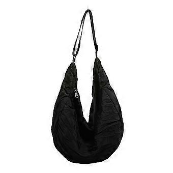 Fashionable Ruched Solid Color Canvas Shoulder Bag with Zippered Closure for Women Large Capacity Crossbody Handbag Black