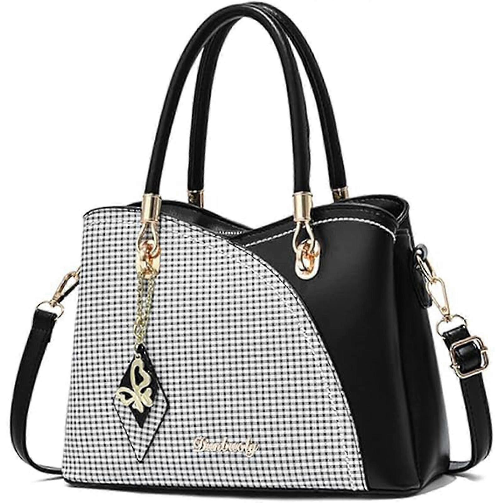 Fashionable Women's Black Handbag with Grid Design - Trendy Tote Bag for Everyday Use & Stylish Accessories