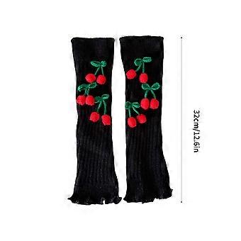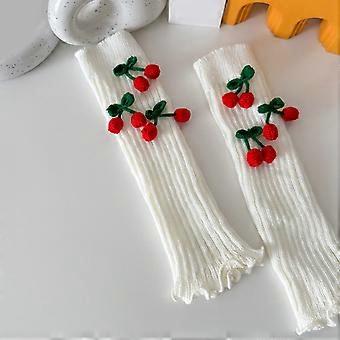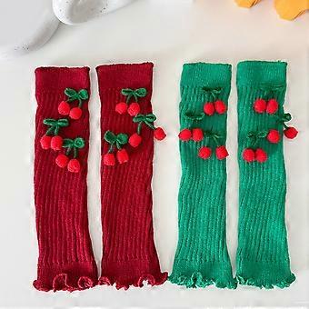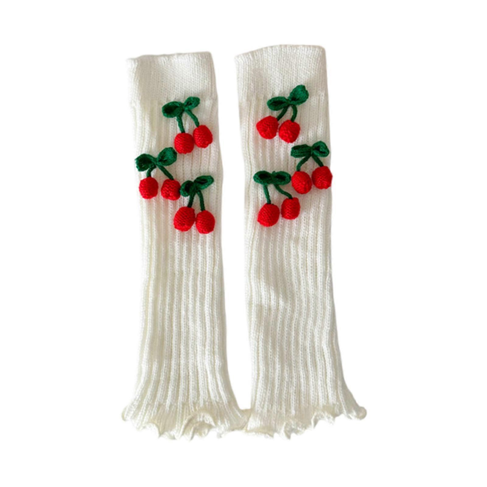 Fashionable Knitted Leg Warmers for Women Winter Boot Cuffs Footless Socks with Christmas Cute Cherry Bowknot Decoration White
