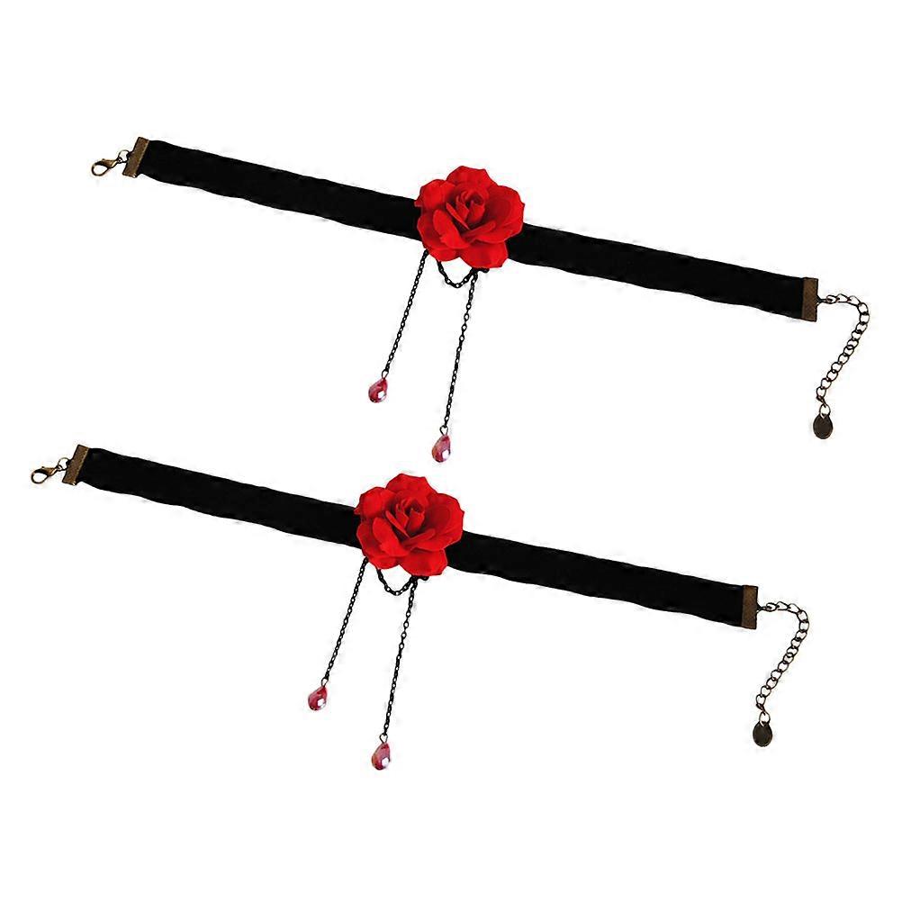 Flower Choker Necklace Designed For Women Friends In Elegant Black Red Design 2Pack